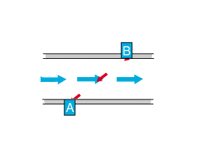 In return, transceiver B sends an ultrasonic signal to A. This signal travels against the flow and therefore has a lower velocity as the signal that was sent from A to B.